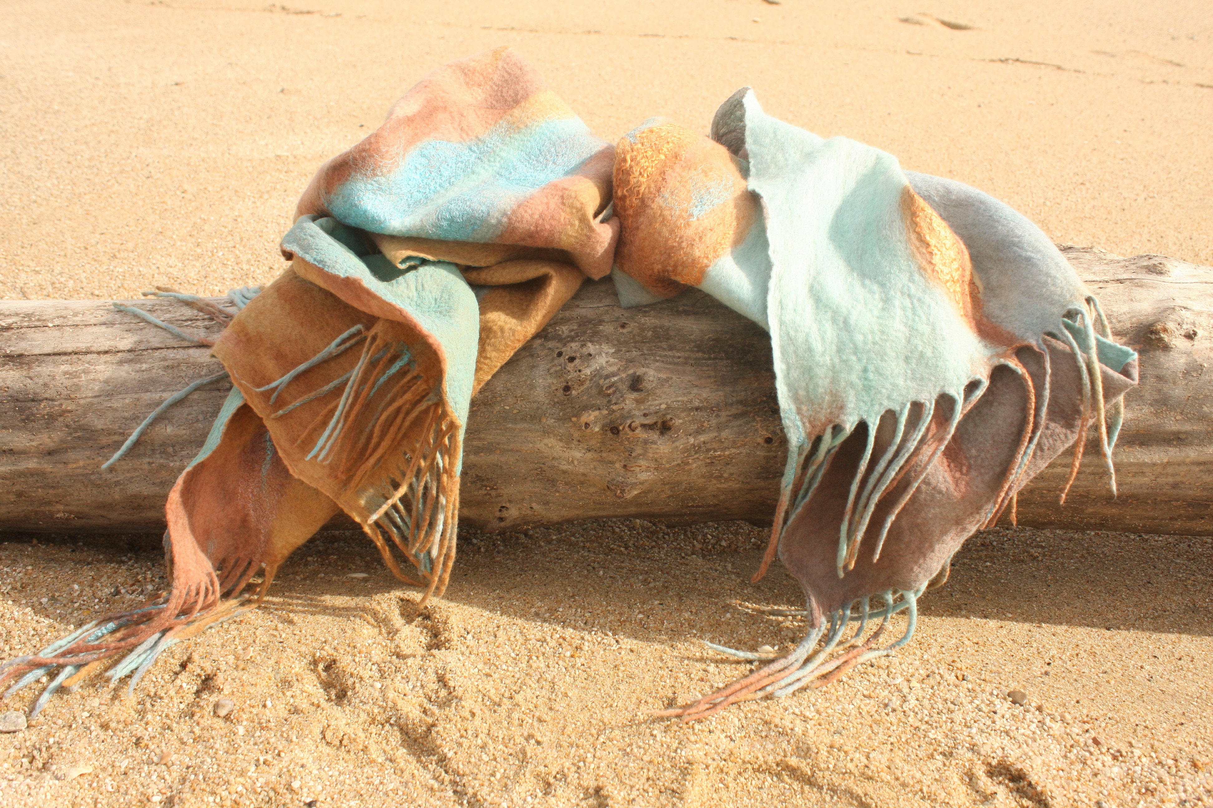 Fieltro artesanal, fielto nuno y tintes naturales. Sombreros, chales y accesorios de lana merina y seda natural.